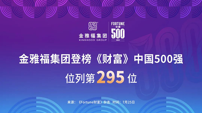 深圳新闻网2024年7月26日讯(记者 潘峰)7月25日,2024年《财富》中国500强排行榜重磅发布,金雅福集团凭借卓越的综合实力强势登榜,位列总榜单第295位。