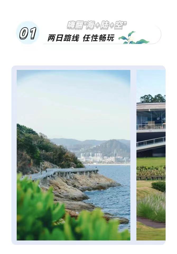 Day 2:畅游小梅沙海洋世界→体验滑翔伞俯瞰海上盛景→乘坐接驳巴士前往云海公园观日落美景→打卡盐系粤菜领略独特风味→漫步海滨栈道完美Ending