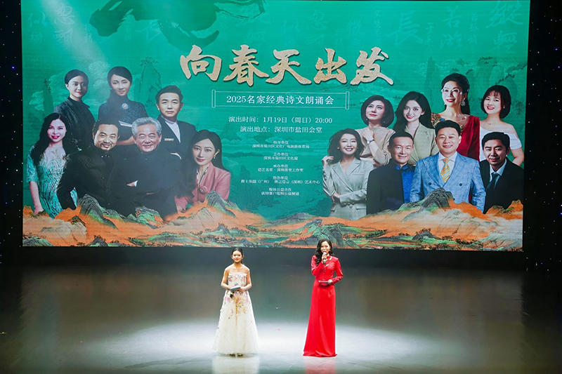 深圳新闻网2025年1月21日讯 1月19日晚,由深圳市盐田区文化广电旅游体育局指导、盐田区文化馆携手语艺名家·深圳课堂工作室精心打造的“向春天出发——2025名家经典诗文朗诵会”在盐田会堂落幕。这场由橙士乐园(广州)语言艺术协办,并得到深圳报业集团读特客户端圳公益频道支持的文化盛宴,吸引了来自全国各地的朗诵爱好者齐聚一堂,共同领略中华文学经典的独特魅力。