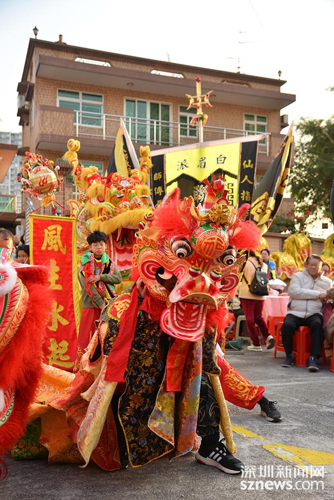 活动现场,锣鼓喧天,热闹非凡,年味浓郁。沙头角麒麟队等深圳麒麟队与香港本地的麒麟队轮番登场,他们时而腾跃翻飞,展现麒麟的活泼与灵动,时而俯首祈福,传递祥和与美好的祝愿,为现场的观众送上了新春的祝福与关怀,让观众近距离领略到了传统文化的独特韵味与魅力。与此同时,深港两地的队员们与现场数百名乡亲围坐一堂,共同品尝了象征着团圆与美满的香港特色美食“大盆菜”,在欢声笑语中感受着浓厚的节日氛围与深厚的乡情。