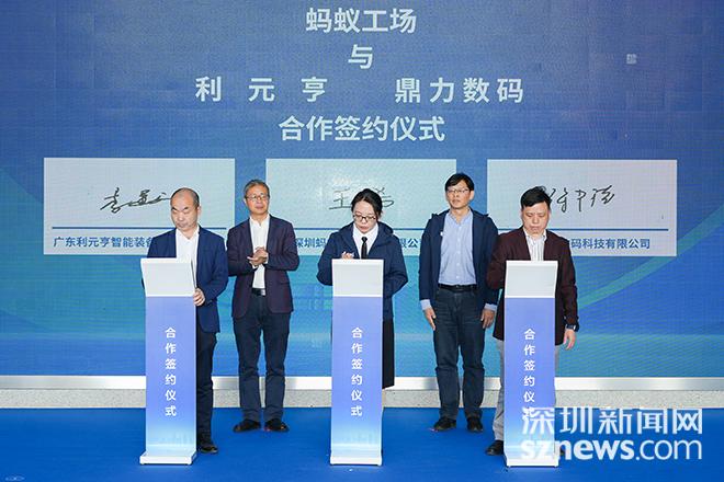此外,发布会上还举行了隆重的合作签约仪式。蚂蚁工场与广东利元亨智能装备股份有限公司、深圳鼎力数码科技有限公司签署了合作协议,双方将在工业大模型应用领域展开深度合作,共同探索工业智能化的新路径。