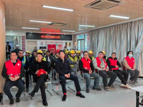 盐田区人民医院集团段医生作为主讲人,通过投影屏幕展示了各类工地常见创伤案例及应急处理方法。他结合实际工作经验,详细讲解了如何正确处理伤口、止血以及急救措施,并强调了日常健康管理的重要性。参会人员全神贯注地聆听,不时记录重点内容,展现出对此次培训的高度关注。