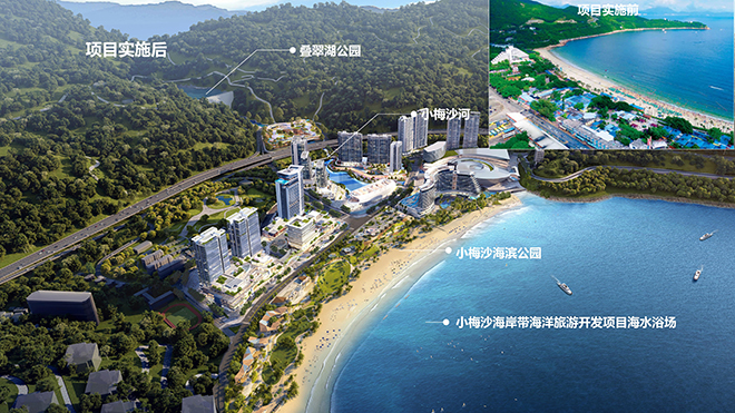 创新构建“生态环境治理+文旅健康产业”融合发展新业态,结合小梅沙片区整体改造中新海洋世界、深圳美高梅酒店、钓鱼台精品酒店等文旅产品建设,因地制宜导入高端文体娱乐等特色产业。投入使用后,“五一”长假期间,小梅沙片区整个片区接待约31000人,同比增长52.5%。小梅沙片区从功能单一的沙滩、海域转变为提供“山海河湖城”交相辉映全场景式旅游体验的国际都市亲海度假区。