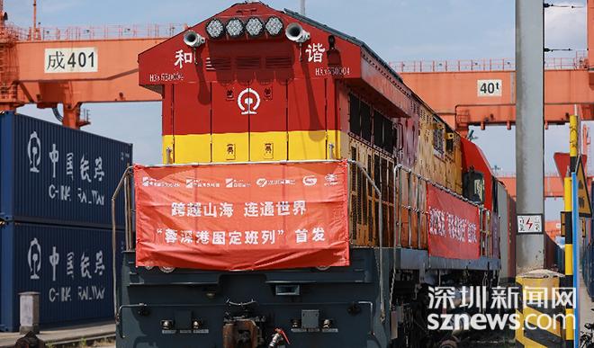 深圳新闻网2025年5月29日讯 5月28日上午,伴随着嘹亮的汽笛声,首趟满载着电器配件等货物的“蓉深港图定班列”从中铁联集成都中心站缓缓驶出,这趟图定班列满载的货物,将在2天内抵达深圳盐田港(下称盐田港),或随即中转至香港葵青港(下称葵青港),换装上国际班轮发往世界各地。