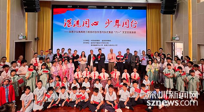深圳新闻网2025年5月30日讯(记者 潘峰)5月30日下午,“深港同心·少年同行”深港沙头角两地三校结对合作签约仪式暨迎“六一”文艺交流活动在盐田区外国语小学东和分校举行。现场,深港青少年们以一曲《我和我的祖国》的深情合唱,将气氛推向高潮,展现了深港两地青少年携手共进、心连心的美好愿景。盐田区委常委、区委(区政府)办公室主任肖凯,香港新界沙头角区乡事委员会主席李冠洪,盐田同乡联谊总会会长沙锦涛,香港北区区议员高维基等出席活动。