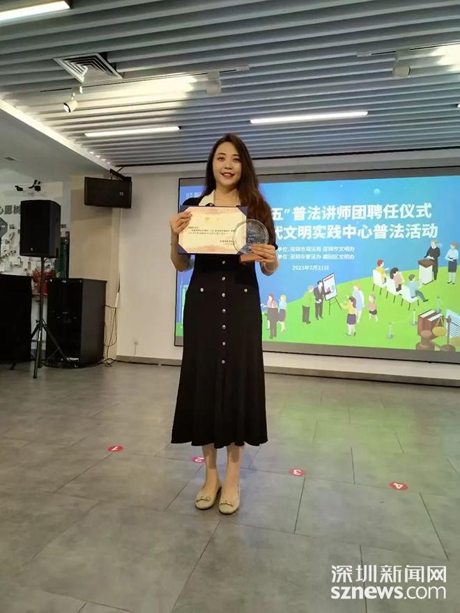 在蛇口公共涉外法律服务中心,她定期参与“送法进企业”“送法进社区”活动,将复杂的涉外法律知识转化为通俗易懂的语言,为企业合规经营、社区居民维护权益提供切实指引。