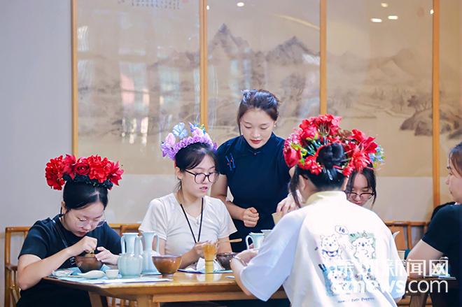 在面花制作过程中,一团团面粉被指尖温度赋予了传统面食的艺术生命力。这不仅是对传统食俗艺术的传承,更是借由亲手塑型,引导青年思考“家庭滋养”之于个人成长的基石意义,将情感揉进生活细节。而最后的点茶环节更是将活动推向高潮——青少年们安坐案前,在专业茶艺师的指导下研习茶道,一招一式复刻古人点茶之形,仿佛穿越时空再现宋代礼乐风华。更富深意的是,他们为父母奉上亲手沏的香茗,以茶为媒传递感恩之情。一敬一饮之间,流淌的是反哺深恩的赤诚,是家风孝道的无声传承。