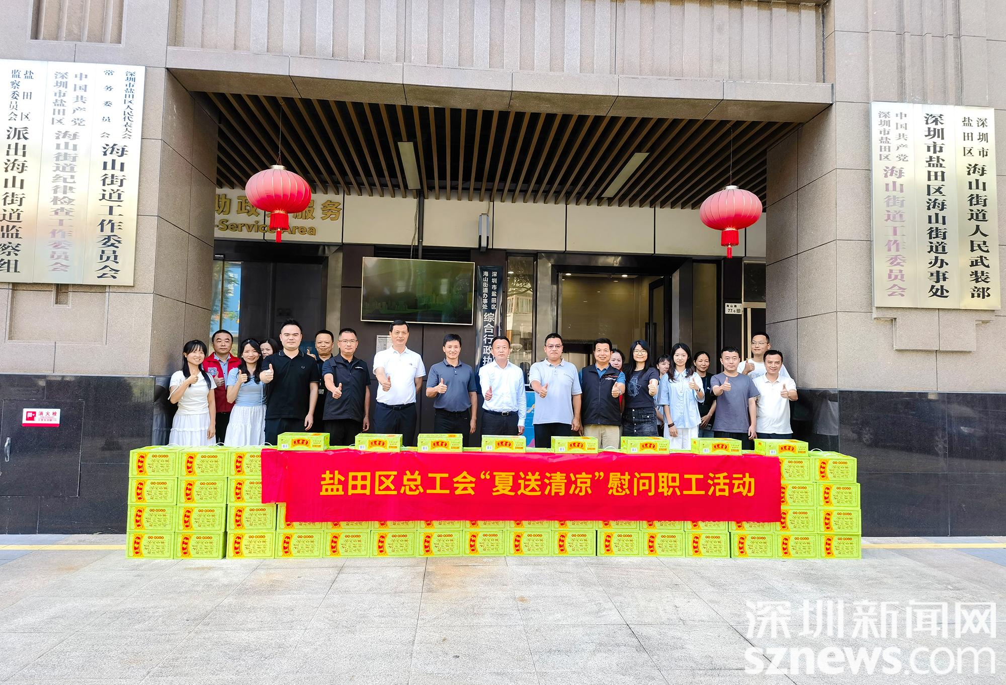 深圳新闻网2025年8月29日讯 近日,盛夏酷热,盐田区总工会积极开展“夏送清凉”系列关爱活动,以“定制化物品+硬核政策”组合拳做好高温劳动保护工作。区总工会领导班子带队深入基层工会,慰问一线职工,送去工会“娘家人”的清凉“大礼包”。