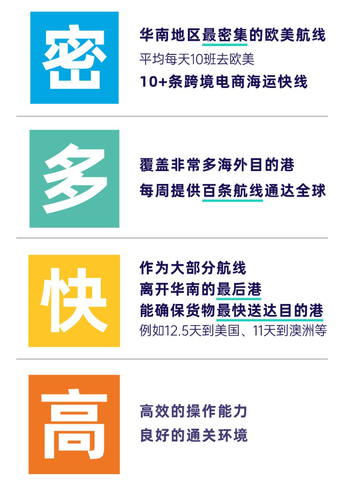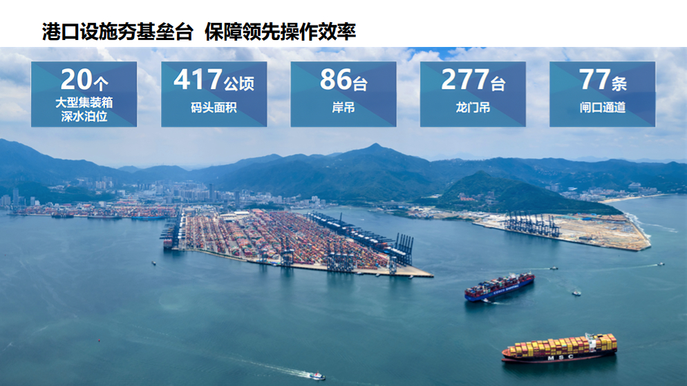 作为全球超大型船舶首选港之一,以及大部分航线离开华南的最后挂靠港,拥有“密、多、快、高”的优质海运服务。每周提供百条航线通达全球,不仅让企业物流选择丰富多元,更加灵活地应对市场变化,更以高效稳定的运输网络,为客户创造“快提快运”黄金窗口,确保货物最快送达目的港,为全球产业链供应链保通保畅。