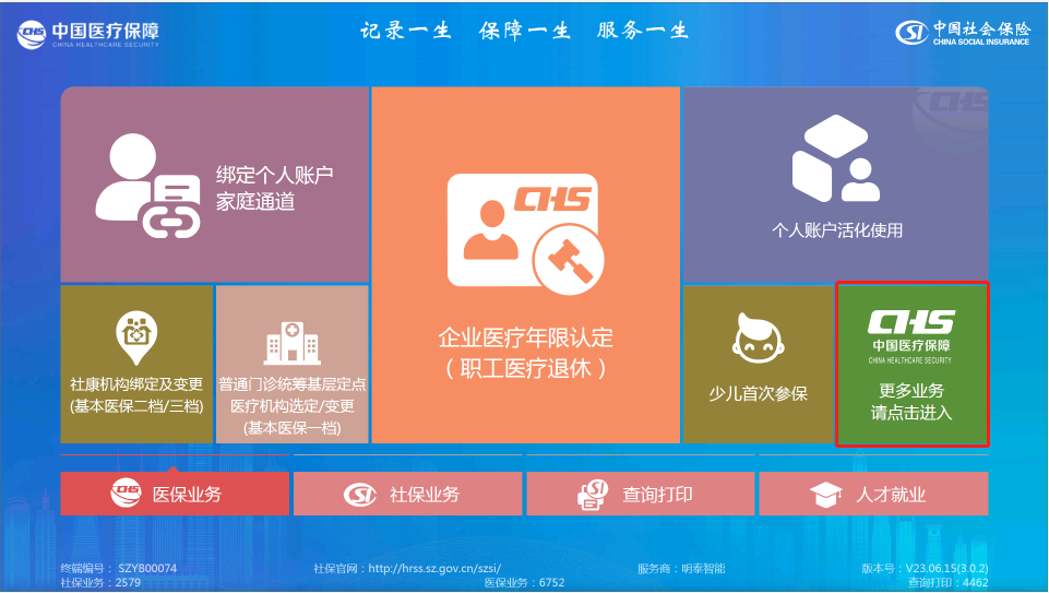 医保自助机终端办理在医保自助终端操作,点击“更多业务”→“个人参保登记”→“灵活就业人员新参保(深户)”,选择任一方式登录后,根据提示完成操作即可。