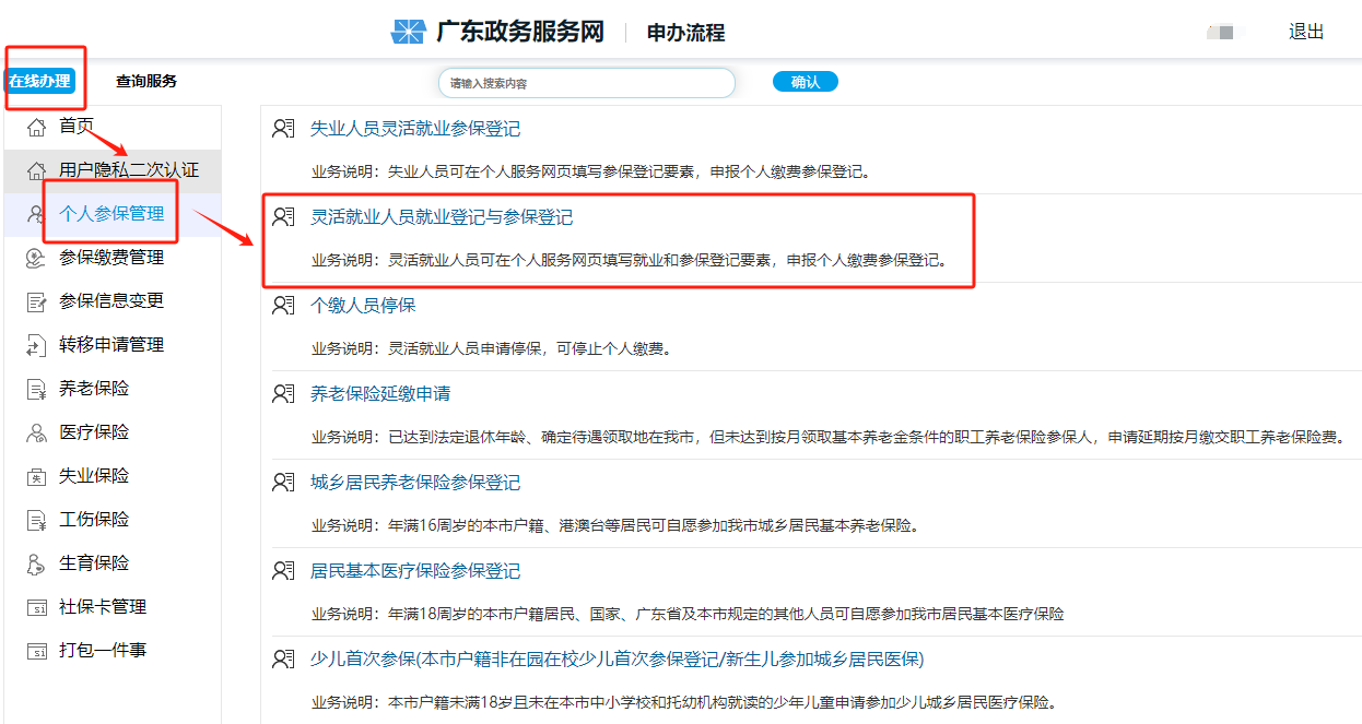 “深圳社保”微信公众号办理进入“深圳社保”微信公众号,点击菜单栏“掌上办”→“业务办理”,人脸登录后进入业务办理页面,点击“参保管理”→点击“灵活就业登记和参保登记(港澳台、非深户、深户)”→“立即办理”,阅读协议书后点击“接受”,填写人员信息后点击“下一步”即可成功办理。
