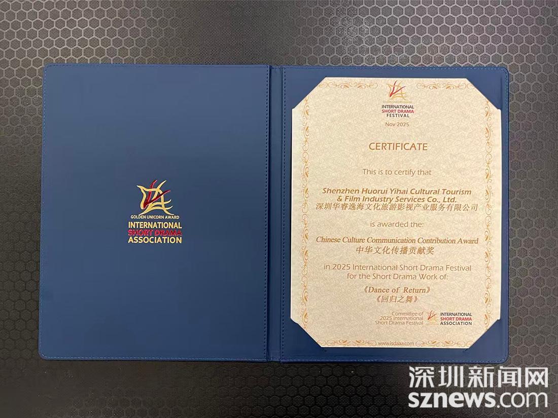 深圳新闻网2025年11月12日讯 (通讯员:张帆 郭创毅)近日,2025国际短剧艺术节暨“金独角兽奖”颁奖典礼在美国好莱坞中国剧院隆重举行。由深圳市盐田区委宣传部、区文化广电旅游体育局指导,盐田区影视企业深圳天润通达影视传媒有限公司和深圳华睿逸海文化旅游影视产业公司出品的短剧《回归之舞》(又名《渔火照归途》),凭借独特的文化表达与叙事创新,荣获“华语单元中华文化传播特别贡献奖”,中国驻洛杉矶总领事馆文化参赞王太钰受邀为该剧颁奖。