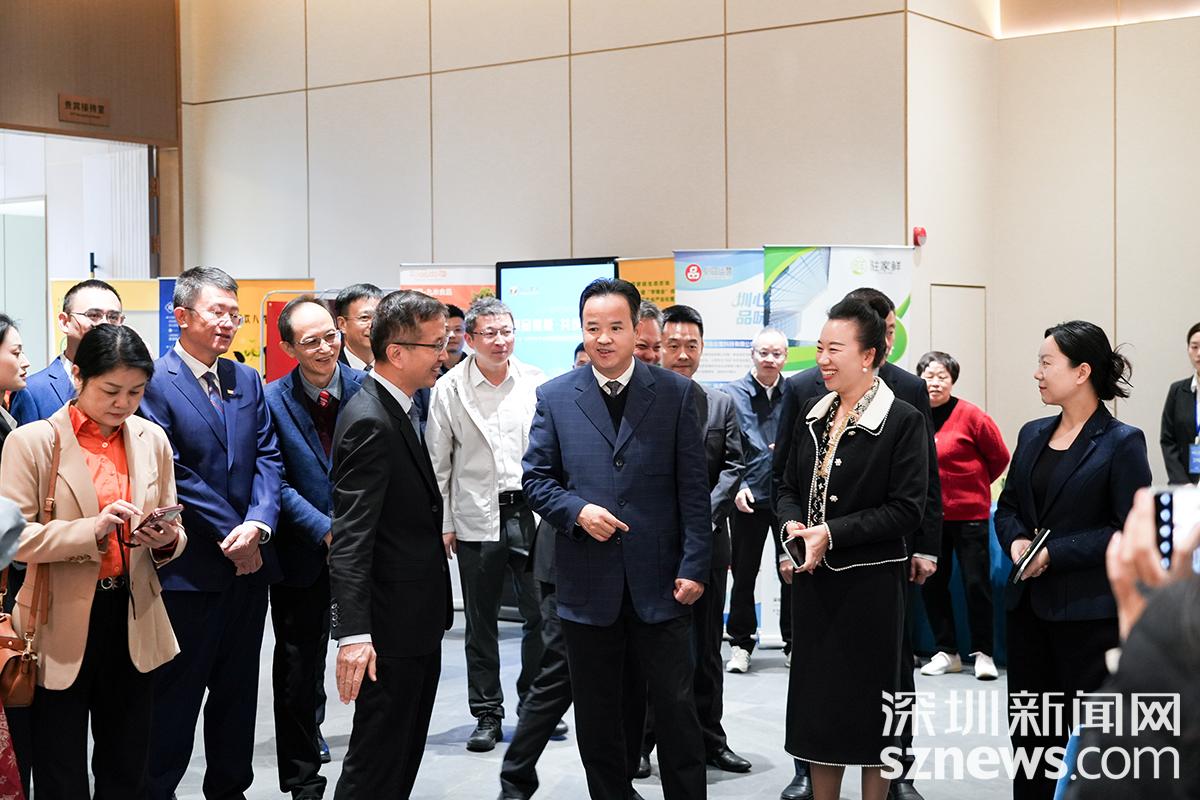 盐田区委书记李忠,深农投集团董事长黄伟、总经理马里,深圳市市场监督管理局机关党委书记、二级巡视员陈建民,深圳市乡村振兴和协作交流局副局长刘得胜,盐田区委常委、区委(区政府)办公室主任肖凯,深农投集团副总经理、圳品集团执行董事管耀华,深圳市商务局一级调研员曾锦辉,深圳市国资委股东事务和社会责任处处长冯文共同为“圳品”消费帮扶中心揭牌并启动出海平台。