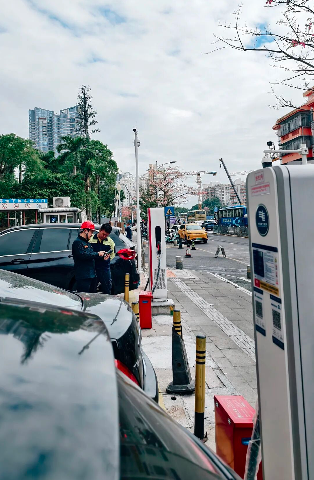 据介绍,该站点原为南方电网深圳盐田供电局于2019年建成运营的慢充站。随着2024年中英街延长通关时间及业态持续升级,原有充电设施已难以满足游客日益增长的充电需求。为此,盐田供电局对站点实施全面升级改造。