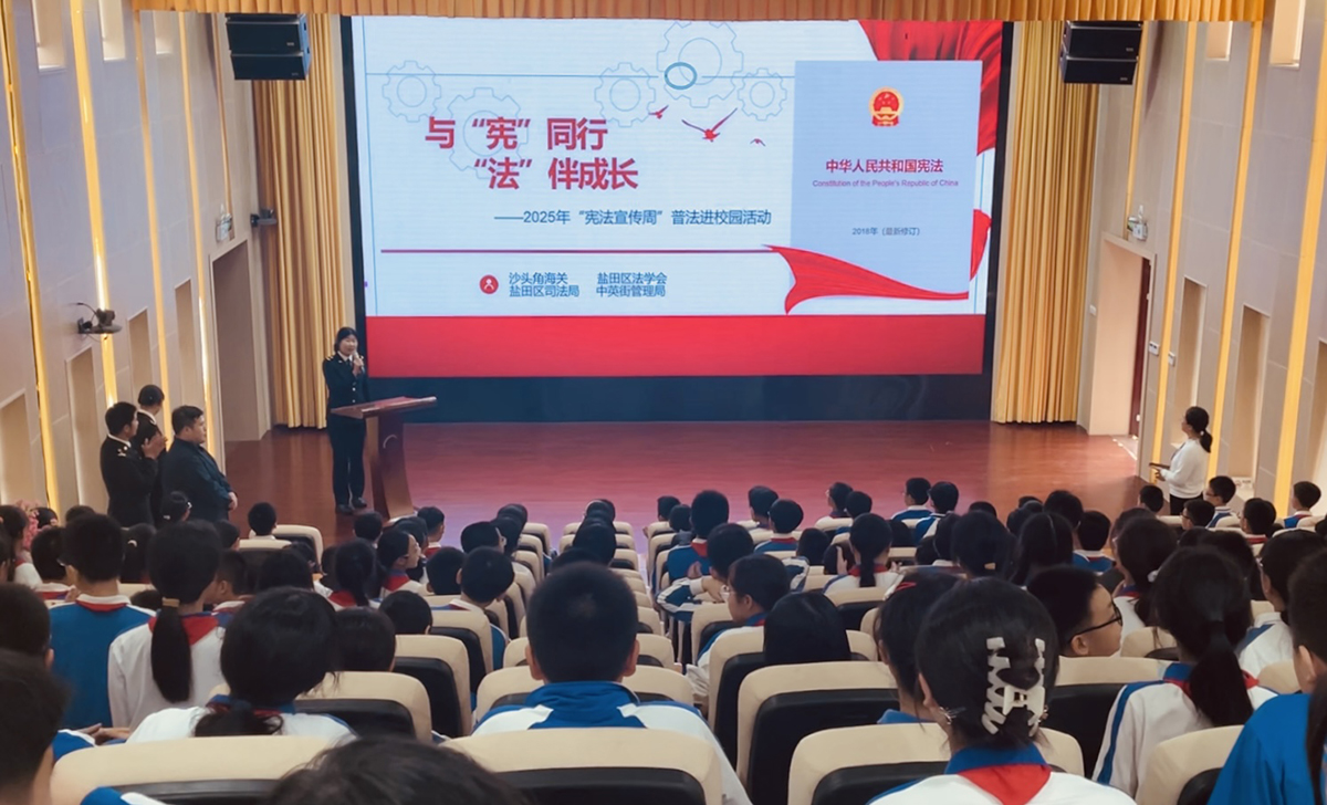 深圳新闻网2025年12月11日讯 在第十二个国家宪法日到来之际,近日,深圳海关普法讲师团与盐田区法学会、盐田区司法局、中英街管理局共同走进盐田区外国语小学东和分校,开展“与‘宪’同行,‘法’伴成长”普法进校园活动。