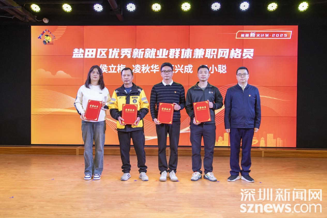为盐田区优秀新就业群体兼职网格员颁发证书。