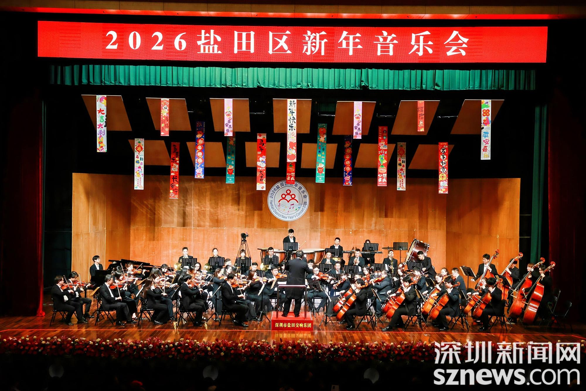 深圳新闻网2025年12月30日讯 为营造喜庆祥和的节日氛围,丰富辖区群众精神文化生活,以实际行动践行文化惠民宗旨,近日,盐田区2026年新年音乐会在盐田剧场(原盐田会堂)华彩上演。本次活动采取线上线下同步直播方式,吸引近万名观众观看。盐田区委书记李忠,市文联副主席赵东等,与辖区企业家、国际友人、退役军人、老干部等各界代表齐聚一堂,共赏音乐盛宴。