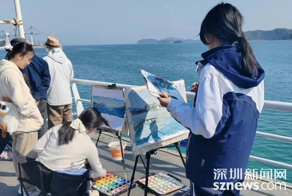 深圳新闻网2026年1月7日讯(记者 潘峰)晨光初现,梧桐山的轮廓在天际线上渐渐清晰。盐田的海滨栈道上,几位年轻人正支起画板,他们的身旁,有银发老者对着大海凝神调色,也有孩童蹲在礁石旁,用稚嫩的手涂抹着眼前的第一抹朝霞。这不是某个美术学院的户外课堂,而是盐田“山海都市画廊”一个普通的周六早晨。