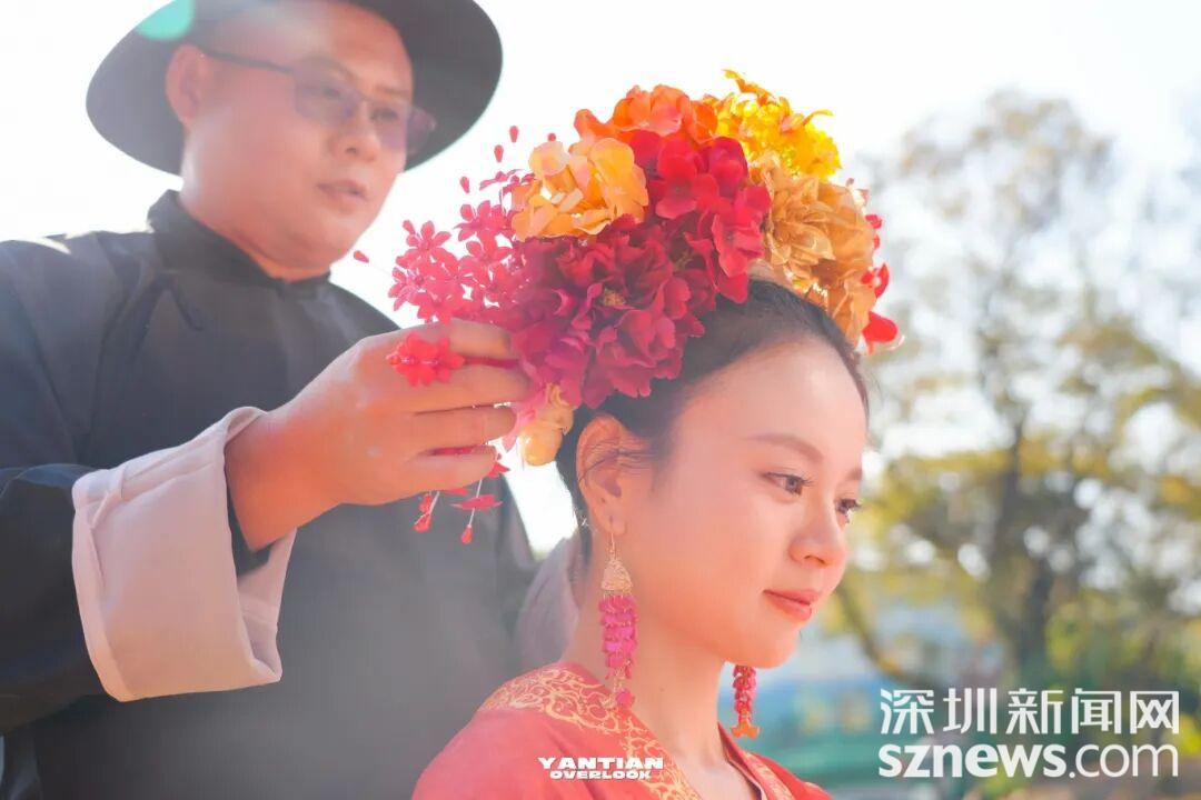 “花知簪”的命名亦暗藏匠心:“花”代表恩上湿地铃儿花与深圳簕杜鹃,承载本地情怀;“知”传递文化共鸣与知己之遇;“簪”则彰显蟳埔簪花围千年非遗的东方浪漫。前来体验的市民表示,将非遗戴在头上,在山海间感受传统文化魅力,这样的新年活动既有意义又具仪式感,让老祖宗的审美在当下焕发新生。