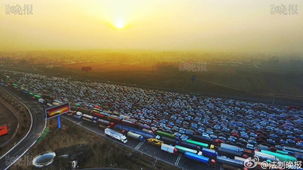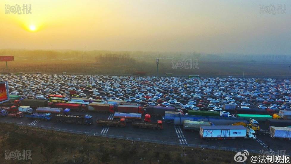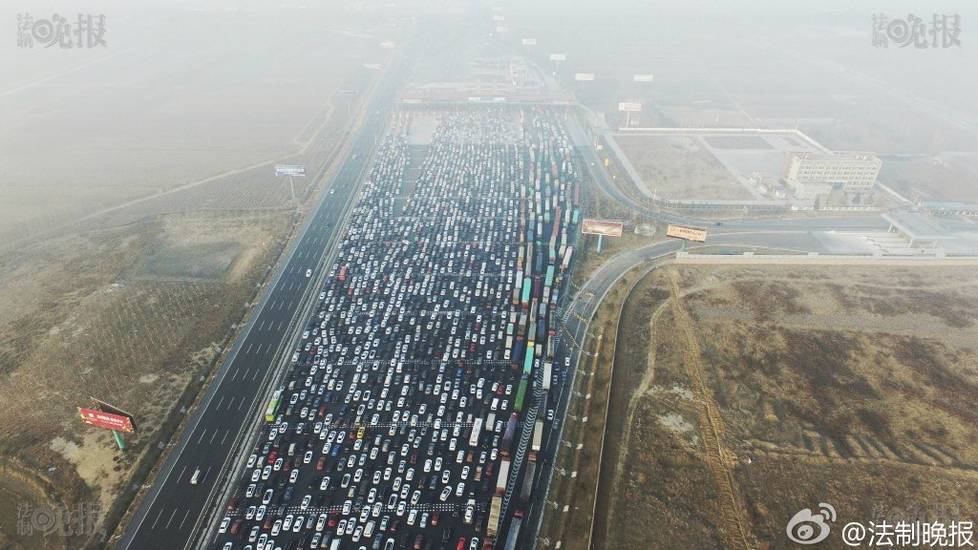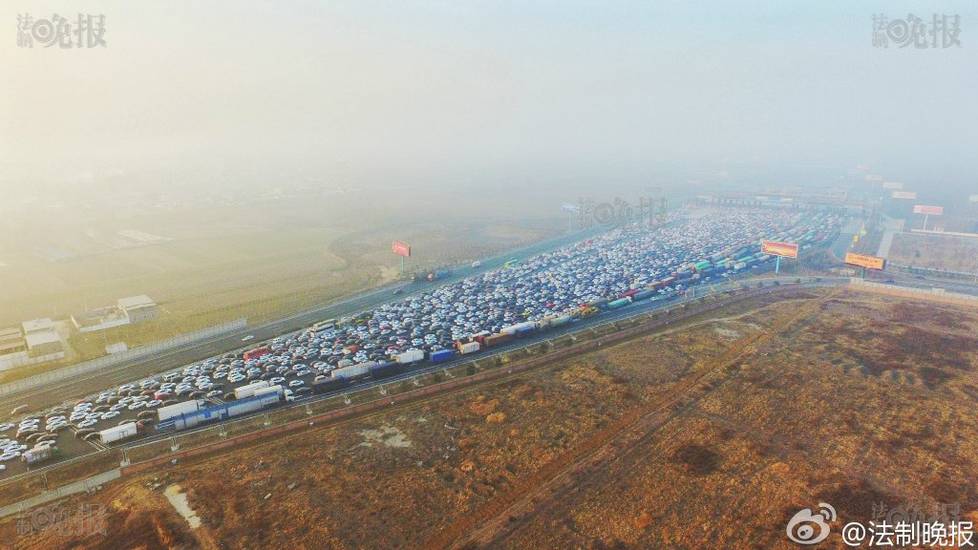 2017年1月2日报道,新年小长假回京高峰,京港澳高速在北京市界收费站出现严重拥堵。据法晚记者获悉,2日下午3点半左右,北京市所有因雾霾封闭的高速均已开启,可正常通行。法制晚报付丁/摄