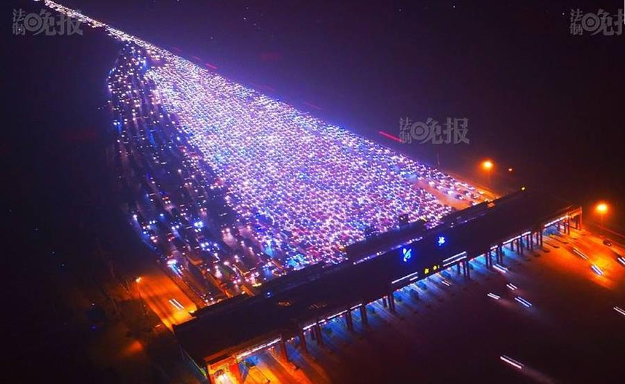 随着高速公路的解封,北京市大部分高速进京方向开始出现集中车流。3点开始,京港澳高速在出现拥堵情况。有记者通过现场航拍看到,大批车辆聚集在北京市界收费处等待停车发卡收费。下午4点,拥堵车辆排队在一公里左右,收费处再成“停车场”。图为今夜的京港澳高速。
