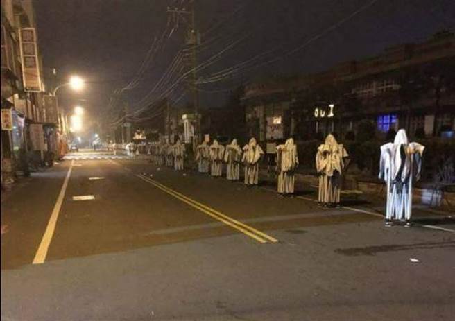 “吓死人!”湘西赶尸路经台湾屏东吗?昨晚一民众在屏县万丹乡四维国小路旁拍到“湘西赶尸”照片,贴在《屏东县万丹乡交流地》脸书,马上引来网络众多回响酸骂,“吓坏了”、“还以为是拍僵尸片”、“吓的漏了几滴”…..。仔细一看,原来路旁一尊尊像尸怪的物品,竟是万丹市集活动后工作人员收拢的露天棚帐,网民也说,工作人员辛苦了,但“以后可以别在晚上收来吓人吗?”
