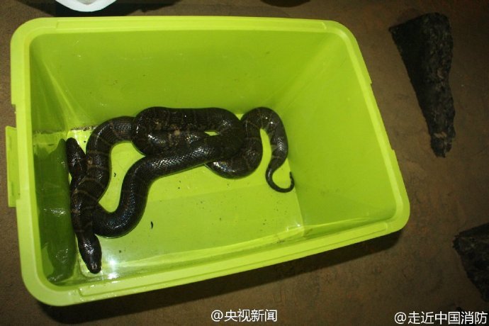 消防员半夜抓蛇。