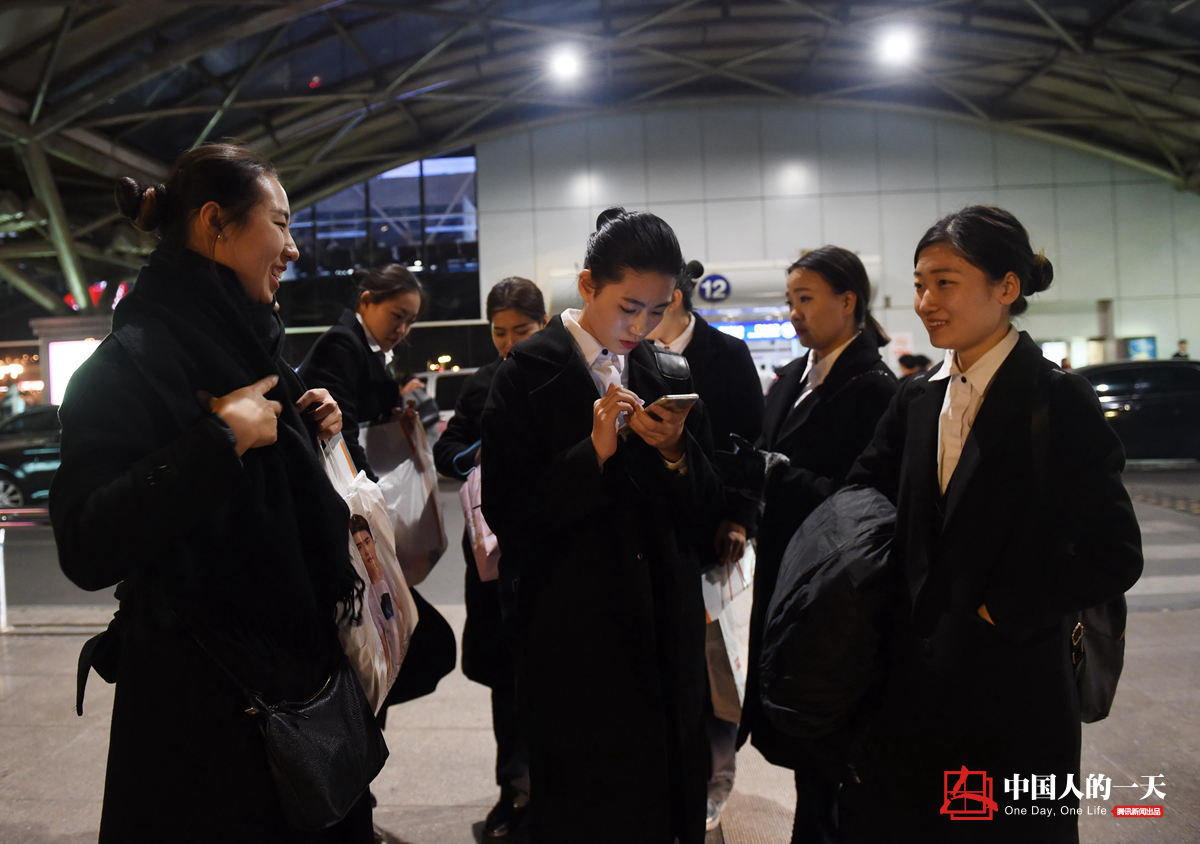 下班之后,姑娘们有时会相约吃饭,聊聊最近看的影视剧。晓培说,接机员的工作让她感受到了乐趣,目前的接机员清一色都是女性,希望有更多的年轻人能够加入队伍,尤其欢迎男生。(微信搜索公众号中国人的一天或chinaoneday,加入微社区,分享你的故事,你将有机会成为中国人的一天主人公。)