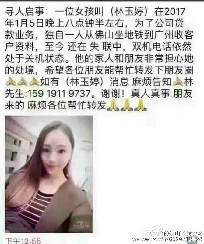林小姐的姐姐说,妹妹平时很乖巧,一般天天都会在群里跟家人互动,而发现妹妹不见的是她的一个异性朋友:“是不是男朋友不知道,她也没说。就是一个男性朋友晚上11点打电话给她,电话可以打通,但是没人接 之后就再打就关机了。”