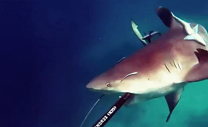 食人鲨突袭潜水者 男子用捕鱼枪堵其嘴火速逃命