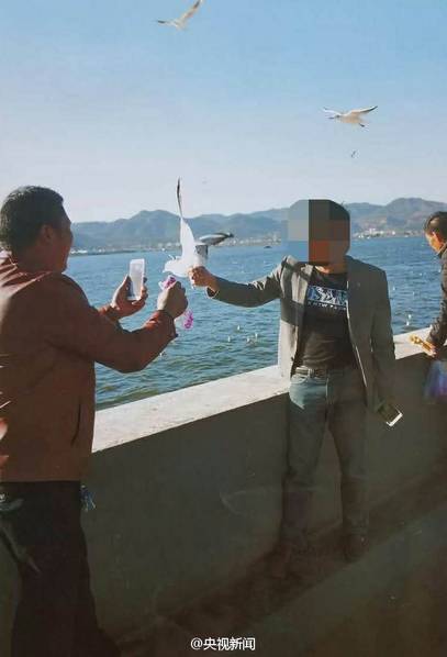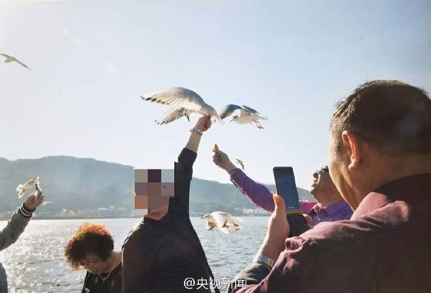 每年冬天,数万只红嘴鸥都会从遥远的西伯利亚飞往云南昆明滇池越冬栖息。2017年1月9日,昆明海埂大坝出现了4起游客捕鸥拍照事件,导致红嘴鸥翅膀折断流血。