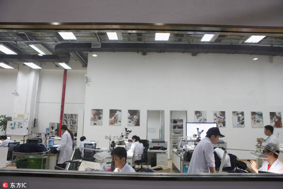 北京亦庄有一座某品牌自建的奢侈品鉴定中心,专门从事奢侈品的鉴定工作,例如爱马仕、BV等各种大牌包和各种名牌手表,甚至字画。据鉴定认证中心总监介绍,每名鉴定师首先进行普通的人工手段鉴定,再采用专业的仪器分析,不同阶段的正品,从镀金层的各种金属含量,到涂层的薄厚。