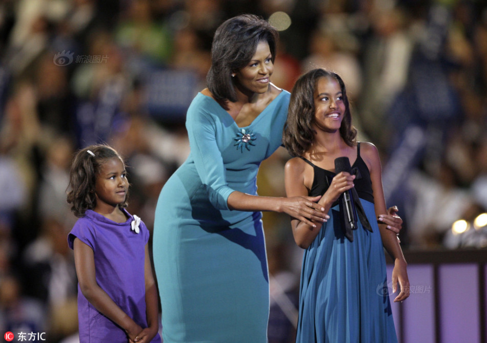 相信奥巴马作为一名父亲看到两个女儿这些年的成长变化估计要感动到哭了。当地时间2008年8月25日,美国丹佛,民主党总统候选人奥巴马的妻子米歇尔和两个女儿10岁的玛莉亚和7岁的萨莎在民主党全国大会上。图/东方IC