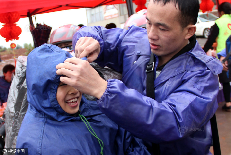 春运第一天,气温降到12℃左右,还下着小雨,公路上又湿又滑。姐姐小郭随父亲走进驿站休息,她和弟弟坐摩托车回老家过年。