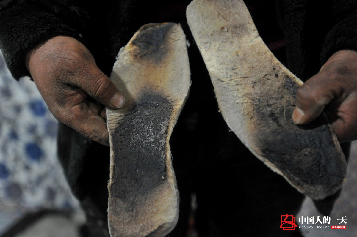 一位工友把鞋垫放在“炉筒子”上烘烤,没想到“炉筒子”温度过高,一会功夫就把鞋垫烤糊了,他很心疼。