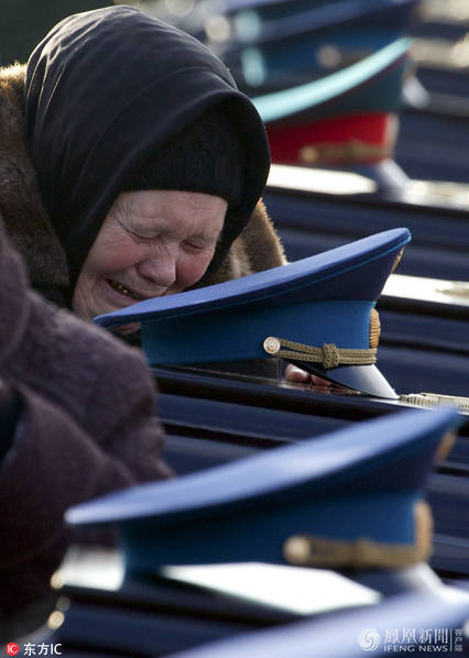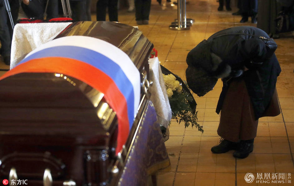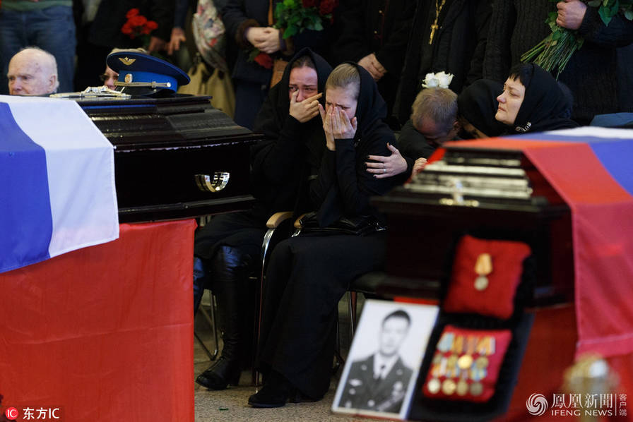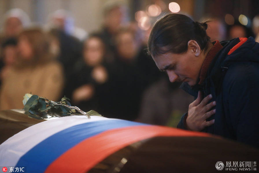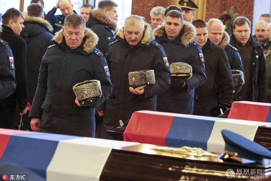 当地时间2017年1月16日,俄罗斯莫斯科,俄国防部失事飞机图-154遇难者葬礼举行。俄国防部所属一架飞往叙利亚的图-154飞机于2016年12月25日清晨在索契附近黑海海域坠毁,84名乘客和8名机组人员无人生还。