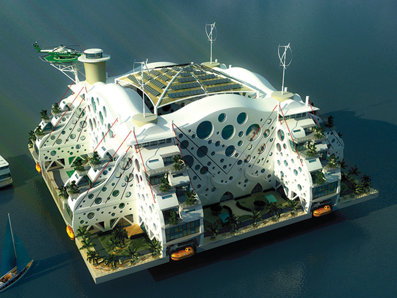 这些平台将由钢筋混凝土制成,可支撑三层及其以下建筑上百年。首批入住居民将为 250 至 300 人。每个平台的造价在 1500 万美元以下,整个浮动城市的成本将在 1.67 亿美元左右。