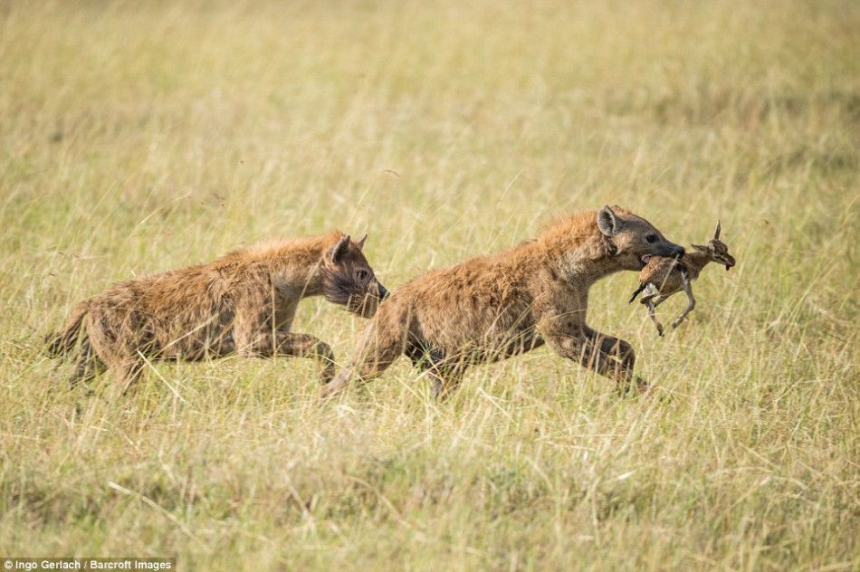 不过,很快它们也找到了自己的食物——一只小瞪羚。虽然残酷,但这就是大自然生存的法则。