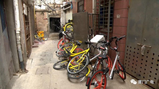 为了给家人和附近邻居空出一条出行通道,她和家人就将这些单车集中堆在了一起。