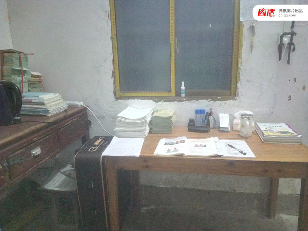 这是我的宿舍。2016年6月,我成功考上了特岗,成为一名光荣的人民教师。8月,我来到这所村小。虽然宿舍的地面高低不平,桌子摇摇晃晃,但我还是每天在这张桌子上备课,改作业。明年6月,我带的第一届学生就要毕业了,我很期待这一刻,也会继续在这张桌子上将知识的种子传播下去。——来自腾讯网友“朱咸辉”