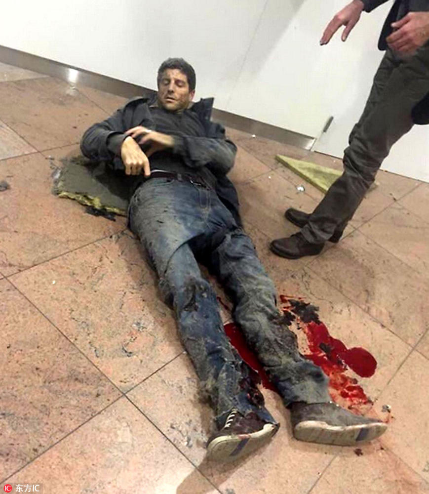 2016年3月22日,比利时布鲁塞尔,布鲁赛尔国际机场恐怖袭击事件伤者。
