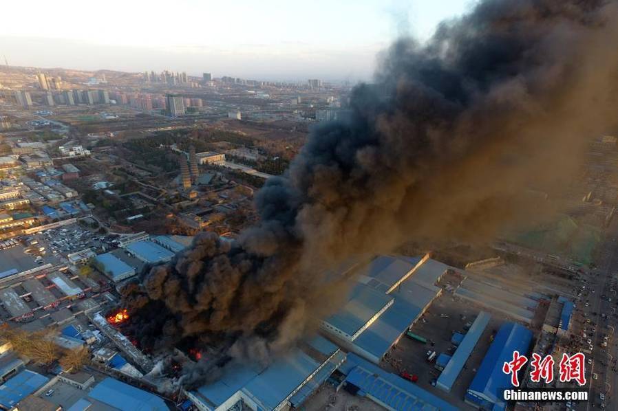 3月30日17时许,山西太原地标明代双塔寺附近一摩配市场库房失火,太原市公安消防支队迅速调集力量组织扑救,现场没有发现人员伤亡。韦亮摄