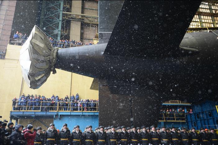 喀山号当天在位于北极圈内的北德文斯克造船厂举行下水礼。