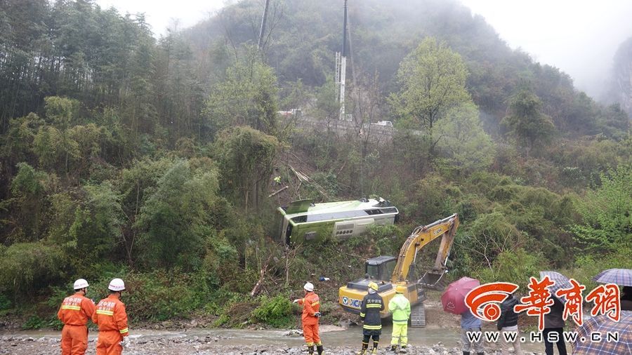 载25人大巴坠入深沟4人亡 村民砸窗救人