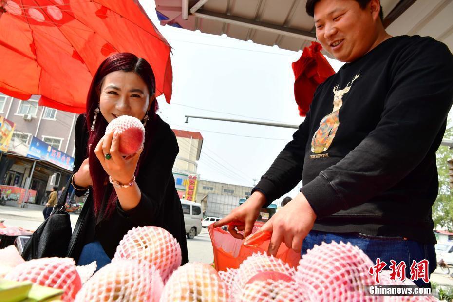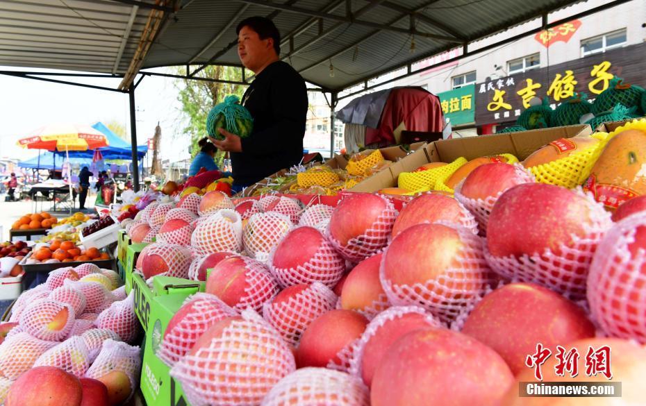 4月5日,河北安新县一集市上,民众正在挑选苹果。 中新社记者 翟羽佳 摄