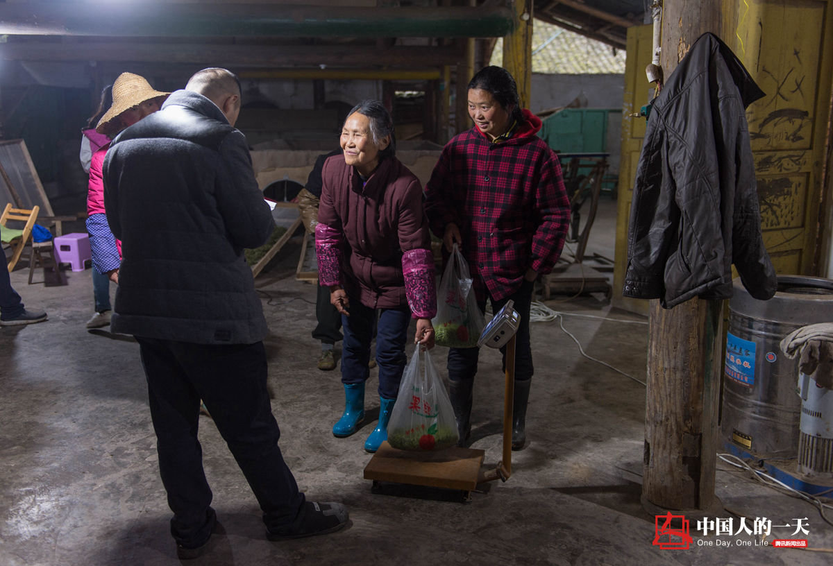 每天傍晚,山里村民采了芽尖就送到他的作坊,大家都是几十年的老熟人了。