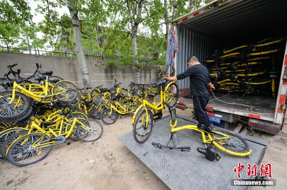 据了解,修车师傅平均每人一天可以修复20台左右的故障单车。图为物流公司将故障单车送至该维修点。 中新社记者 崔楠 摄