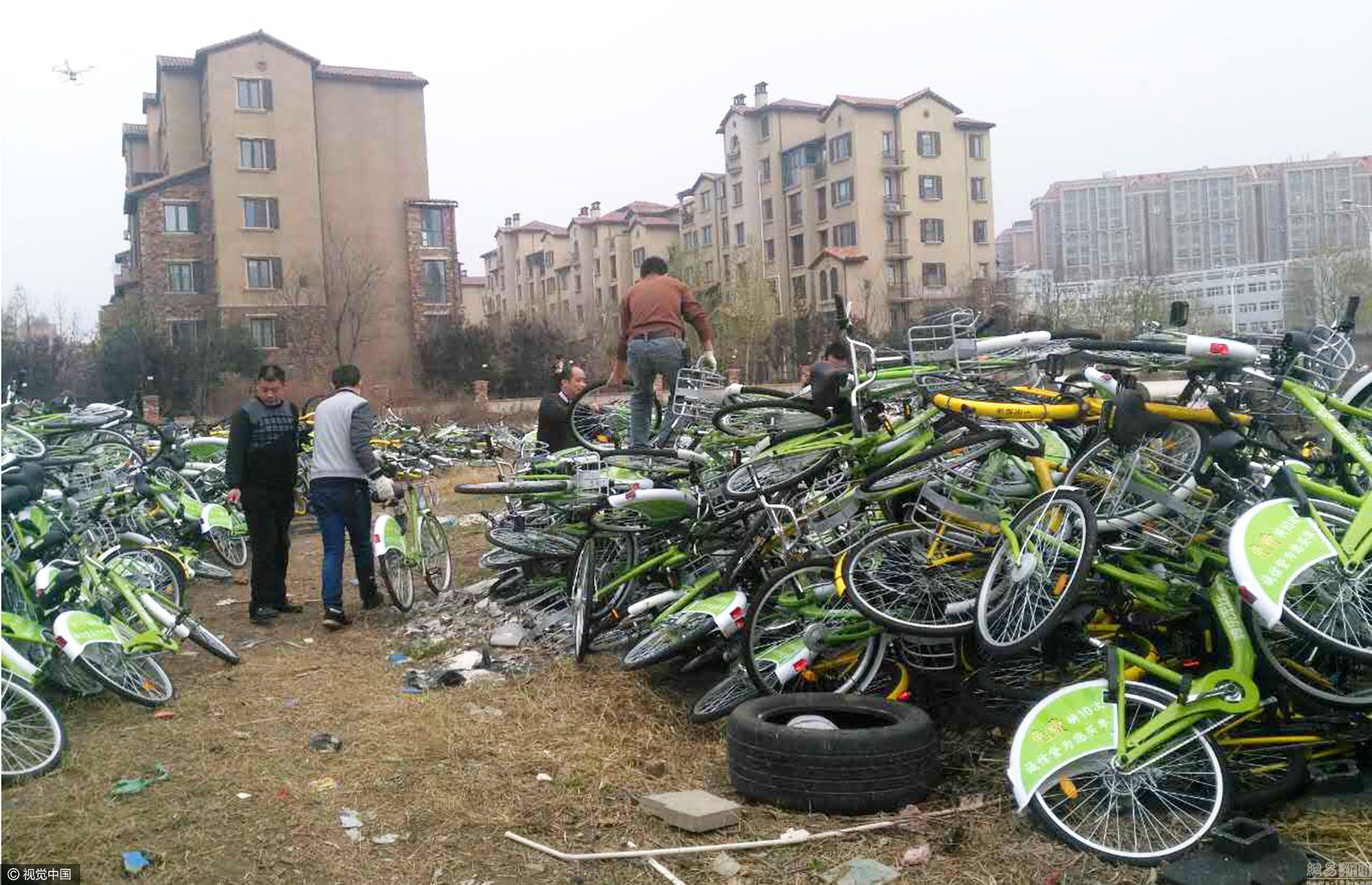 有些市民称,本来这些共享单车是给市民提供方便的,可管理上带来的“麻烦”导致大批崭新的车辆被堆积成“山”而赶到十分惋惜。图片来自视觉中国