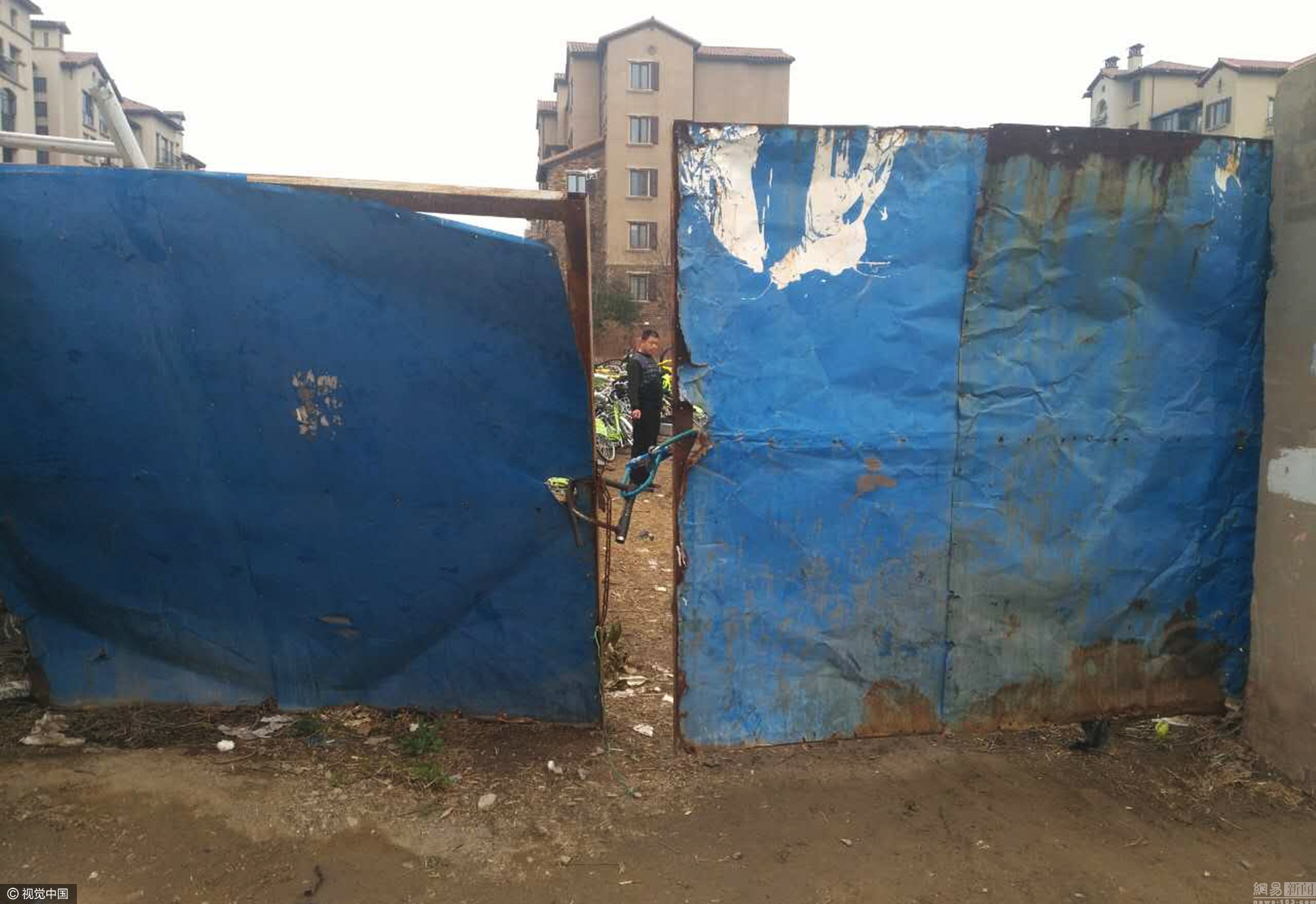 图为共享单车被“扣押”空地的大门。图片来自视觉中国