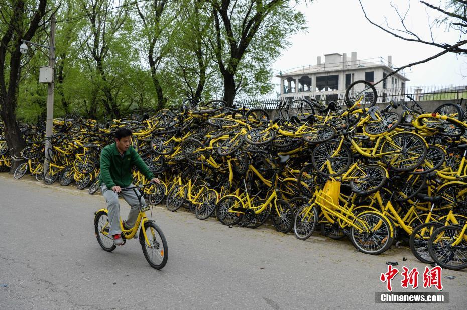 民众骑共享单车经过该维修点。 中新社记者 崔楠 摄